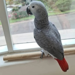 Papagaio-cinzento africano forte e saudável à venda, alerta e responsivo. Esta ave inteligente demonstra grande curiosidade e cria laços fortes com pessoas.